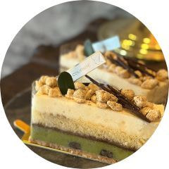 ホワイトチョコのムースと小豆入りの抹茶のガナッシュ